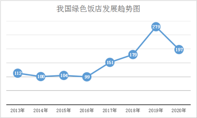 酒店住宿行業(yè)的碳排放可以分成直接碳排放和間接碳排放,直接碳排放主要包括酒店直接控制或擁有等化石燃料燃燒所產(chǎn)生的碳排放;間接碳排放主要包括酒店的建設、運營、銷售、管理等活動帶來的電力消耗而產(chǎn)生的排放。隨著社會環(huán)境保護、減少碳排放意識的增強,綠色低碳轉(zhuǎn)型成為酒店住宿行業(yè)的必然發(fā)展趨勢。在此背景下綠色酒店(Green Hotel)的理念應運而生,根據(jù)《綠色飯店國家標準》的定義,綠色酒店(或譯為綠色飯店)是指在規(guī)劃、建設和經(jīng)營過程中,堅持以節(jié)約資源、保護環(huán)境、安全健康為理念,以科學的設計和有效的管理、技術(shù)措施為手段,以資源效率最大化、環(huán)境影響最小化為目標,為消費者提供安全、健康服務的飯店。綠色酒店理念的產(chǎn)生也推動了我國綠色酒店數(shù)量的逐步增加,如圖2所示2013年-2020年我國綠色飯店新增評定數(shù)量呈現(xiàn)大幅增長。綠色酒店建設目前也已成為酒店行業(yè)低碳轉(zhuǎn)型的關(guān)鍵方向,也是減少行業(yè)碳排放,實現(xiàn)“30·60”目標不可或缺的一步。