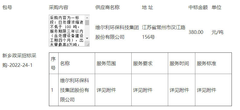 日前,中國政府采購網(wǎng)發(fā)布新鄉(xiāng)市環(huán)境衛(wèi)生管理處新鄉(xiāng)市垃圾無害化處理場濃縮液處理項目結(jié)果公告,維爾利環(huán)??萍技瘓F股份有限公司以380元/噸的價格中標(biāo)該項目。
