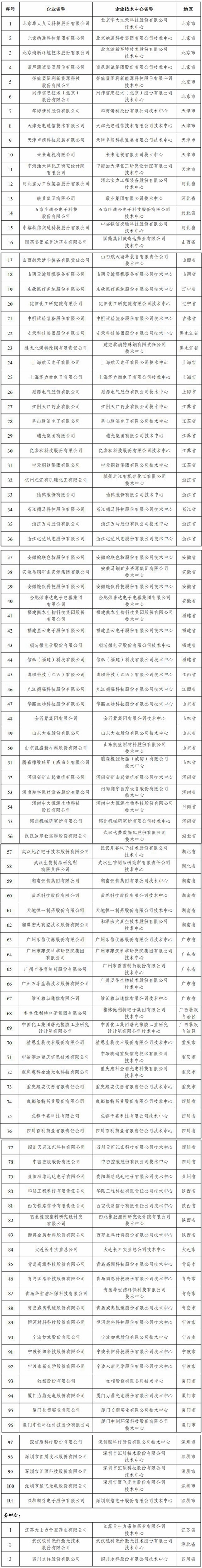 2021年新認(rèn)定(第28批)國(guó)家企業(yè)技術(shù)中心名單