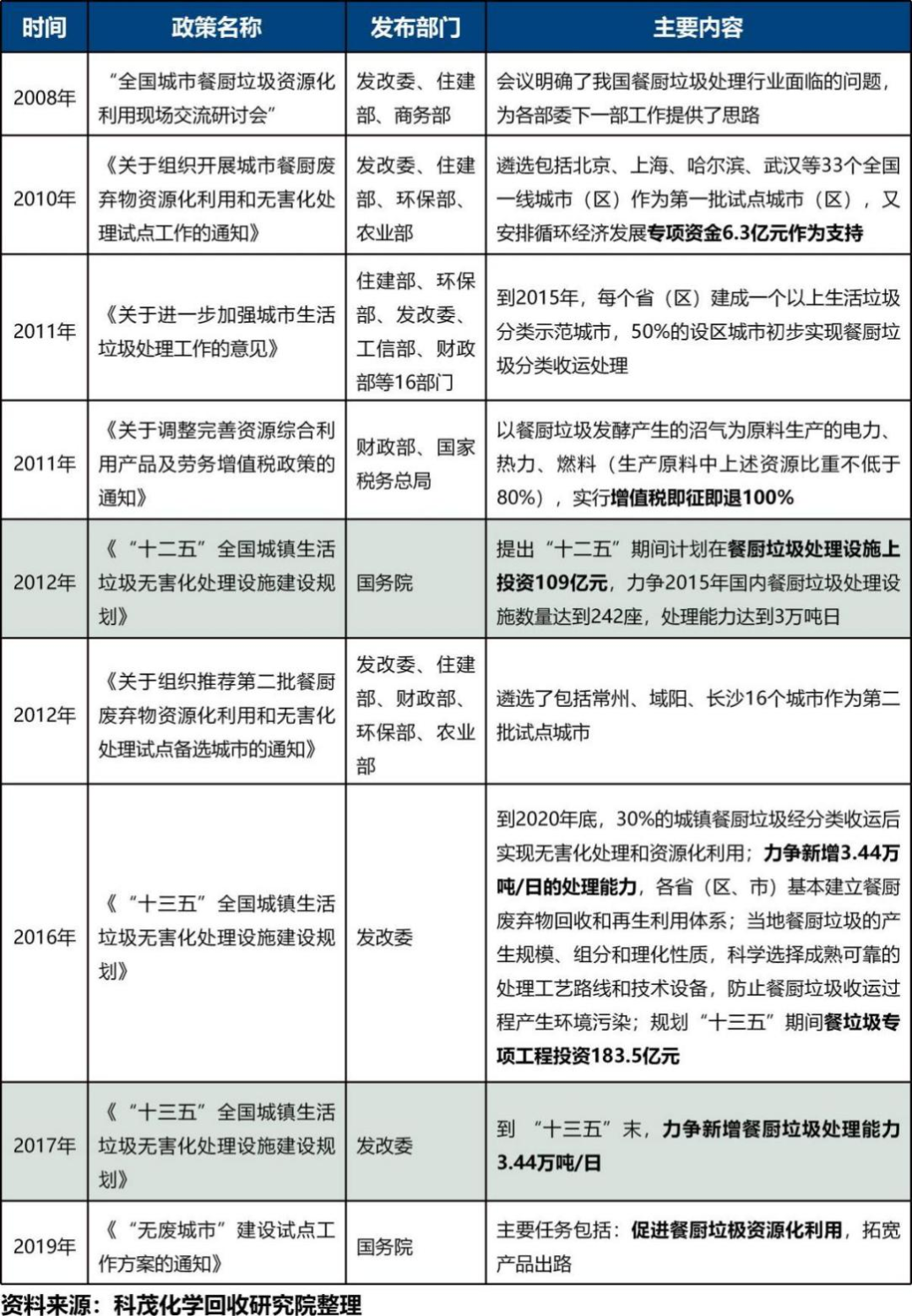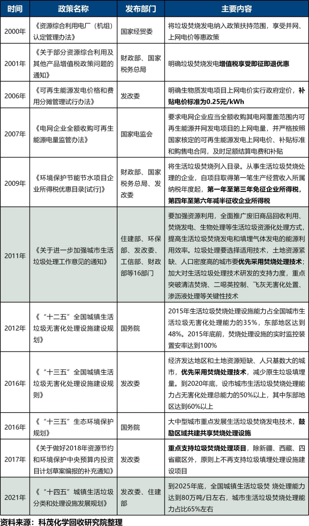 廢塑料化學回收剛剛進入政策制定早期,作為與垃圾焚燒、餐廚垃圾處理比較類似的垃圾終端處理技術,其政策脈絡可供參考。