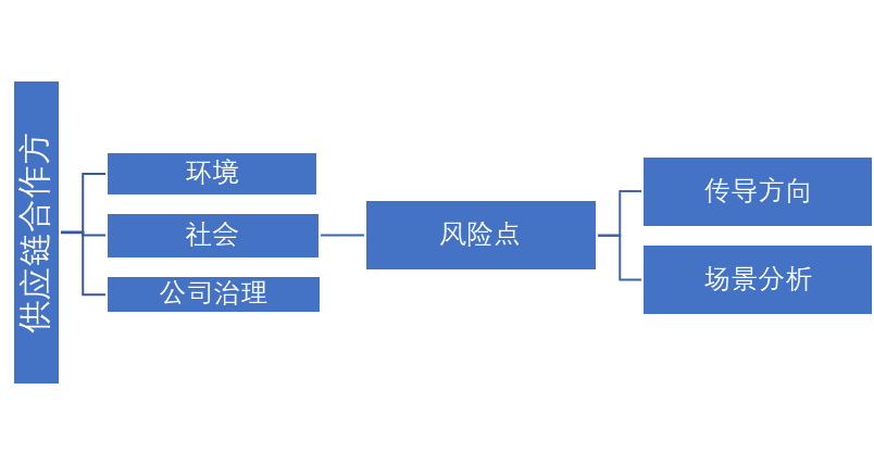 1.企業(yè)自查或委托專業(yè)第三方ESG咨詢,明確供應(yīng)鏈相關(guān)產(chǎn)業(yè)重要ESG風(fēng)險(xiǎn)點(diǎn),進(jìn)行直接和間接風(fēng)險(xiǎn)分析。通過內(nèi)部核查、外部資料參考、盡職調(diào)查等方式,從內(nèi)部明確供應(yīng)鏈ESG實(shí)踐、風(fēng)險(xiǎn)和能力提升需關(guān)注的要素。