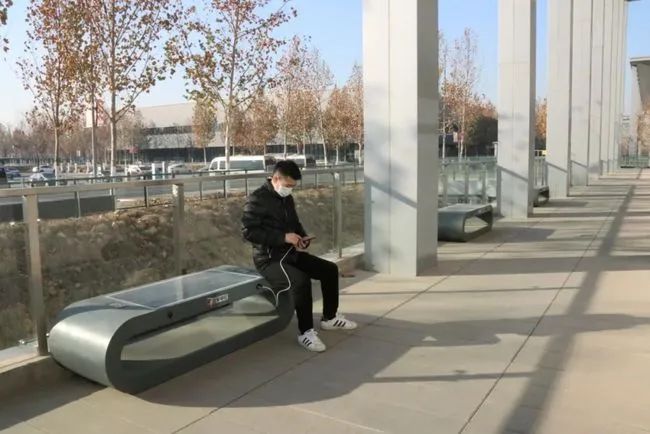 這可不是普通的座椅。椅子坐的那個(gè)面就是光伏板,可以實(shí)現(xiàn)手機(jī)無(wú)線充電或者有線充電。