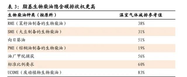 格拉斯哥峰會突破行業(yè)發(fā)展天花板,預計新增15-30萬噸/日新需求。根據(jù)“十四五”規(guī)劃,垃圾焚燒行業(yè)在“十四五”期間仍將保持約10%的行業(yè)增速,穩(wěn)健增長。2021 年11月10 日,中美《強化氣候行動的格拉斯哥聯(lián)合宣言》發(fā)布,聚焦強化甲烷測量和減排。垃圾填埋為甲烷主要的人為排放源之一,管控垃圾填埋產(chǎn)生的甲烷排放量減排潛力較大。我們測算我國每噸生活垃圾衛(wèi)生填埋排放甲烷 58千克,按照UNEP關(guān)于垃圾 填埋甲烷減排的規(guī)劃目標,如果減排量全由焚燒替代填埋來實現(xiàn), 則將新增15萬噸/日的垃圾焚燒發(fā)電產(chǎn)能需求。極限狀態(tài)下,如果 效仿日本、德國把填埋僅作為焚燒尾渣的處理手段,對應(yīng)將增加30萬噸/日垃圾焚燒產(chǎn)能。焚燒替代填埋為大勢所趨,垃圾焚燒行業(yè)天花板在甲烷減排的約束下將提升至更高水平。CCER 交易將提升垃圾焚燒公司的盈利能力和現(xiàn)金流水平CCER交易將提升垃圾焚燒公司盈利能力及現(xiàn)金流水平。CCER交易將顯著增厚垃圾焚燒公司利潤,若按照噸垃圾二氧化碳減排量行業(yè)均值0.3噸、假設(shè)CCER 交易價格40元/噸 CO2測算,CCER 交易預計帶來噸焚燒處置垃圾12元的增量收入,將增厚目前行業(yè)上市公司平均水平營收 的5%及凈利潤的17%左右。伴隨碳中和配套政策逐步落實,CCER交易將使得垃圾焚燒公司的盈利能力及現(xiàn)金流水平獲得明顯提升。如前文所述,固廢等運營類公司具備天然的現(xiàn)金流優(yōu)勢,存在向新能源等具備更廣闊市場轉(zhuǎn)向的先決條件。同時固廢行業(yè)面臨市場分化的競爭格局,所以大多數(shù)固廢龍頭企業(yè)均有轉(zhuǎn)型預期。結(jié)合固廢公司的經(jīng)營特點,主要是圍繞新能源綠電運營商、新能源材料生產(chǎn)商等領(lǐng)域開展轉(zhuǎn)型業(yè)務(wù)。我們認為伴隨轉(zhuǎn)型公司的邏輯逐漸落地,一方面可以獲得新的增長動力,凈利潤增速預期進一步提升,另一方面轉(zhuǎn)換賽道也有助于公司 的估值中樞提升。再生油:碳約束推動需求高增,再生地溝油產(chǎn)業(yè)升級將至碳約束推動需求高增,再生地溝油產(chǎn)業(yè)升級將至。1)碳約束刺激再生油需求,歐洲生物柴油量價將長期處于高位。2)國際政策推動國內(nèi)地溝油利用“高端化”:車用油方面,“烴基化”趨勢明顯;航油方面,國際航協(xié)2050碳中和目標推動生物質(zhì)烴基航煤需求釋放。地溝油制烴基柴油附加值將較UCOME顯著提升,再生地溝油向著高端產(chǎn)品升級的產(chǎn)業(yè)趨勢明顯。1. 碳約束刺激需求,歐洲生物柴油量價將長期處于高位歐洲生物柴油需求旺盛,量價將長期處于高位。1)歐盟是全球生物柴油最大的消費市場,目前歐盟生物柴油消費量占全球總消費量的 40%。2)發(fā)達國家強制按比例添加:伴隨《歐盟可再生能源指令》于2021年開始實施,歐洲公路運輸行業(yè)的生物柴油摻混比例將從 10%提升至25%,需 求將在未來10年保持增長態(tài)勢。按照目前全球生物柴油產(chǎn)能計算,到2030年歐洲地區(qū)將至少出現(xiàn)1000萬噸/年的供給缺口;如果考慮美國拜登政府改變碳減排政策帶來的需求增加以及歐洲地區(qū)淘汰ILUC高風險燃料的影響,總體供給缺口將達1500萬噸/年。3)廢油脂基生物柴油(UCOME)隱含碳排放權(quán)更高,節(jié)碳效果最為突出,競爭優(yōu)勢明顯,長期處于供不應(yīng)求狀態(tài)。2. 國際政策推動國內(nèi)地溝油利用“高端化”,產(chǎn)業(yè)升級將至目前我國地溝油資源化終端產(chǎn)物主要以脂肪酸甲酯為主,隨著國際政策驅(qū)動以及地溝油脫氧加氫制先進燃料生物烴基柴油/航煤技術(shù)進入成熟階段,我國地溝油資源化終端產(chǎn)品將由脂肪酸甲酯產(chǎn)品向生物質(zhì)烴基柴 油/航煤升級,產(chǎn)品附加值將逐步提升,產(chǎn)業(yè)升級良機將至。地溝油經(jīng)加工再利用而制備的生物質(zhì)燃料,包括生物柴油、可再生柴油以及生物質(zhì)航煤:1)生物柴油是廢油脂或動植物油脂經(jīng)酯交換或酯化制成的脂肪酸甲酯(FAME),需要與常規(guī)化石柴油摻混使用, 目前我國地溝油資源化終端產(chǎn)物主要以脂肪酸甲酯為主(UCOME);2)可再生柴油是廢油脂或動植物油脂通過加氫和異構(gòu)化得到的烴基柴油(HVO/HEFA),為國際認可的先進生物燃料,可完全替代化 石柴油或與化石柴油制成調(diào)和燃料;3)生物質(zhì)航煤是由廢油脂經(jīng)加氫處理得到 HEFA 后,經(jīng)異構(gòu)化生成。國際政策推動國內(nèi)地溝油利用“高端化”:1)車用油“烴基化”趨勢明顯。未來伴隨歐洲對于添加比例、排放標準等約束趨嚴,車用油面臨“烴基化”趨勢,生物柴油將向著可再生柴油方向升級。2) 國際航協(xié) 2050碳中和目標推動生物質(zhì)烴基航煤需求釋放。國際航協(xié)設(shè)立2050年實現(xiàn)碳中和的強制性目標,生物質(zhì)航煤作為主要減 排手段需求量將攀升。①作為高排放行業(yè)之一,2019年航空業(yè)占全 球碳排放量的 2%。②國際航協(xié)(IATA)于 2021 年 10 月通過決議, 290 個成員航司在 2050 年實現(xiàn)碳中和,助力實現(xiàn)巴黎協(xié)定控制溫升 的目標。計劃減排量相當于 2050 年前累計減排 212 億噸二氧化碳 當量。③現(xiàn)有技術(shù)中,生物質(zhì)航煤為主的環(huán)保航空燃料將為主要的 