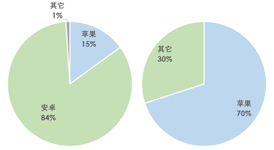 圖 2 手機行業(yè)市場占有率(左)與利潤分配(右)