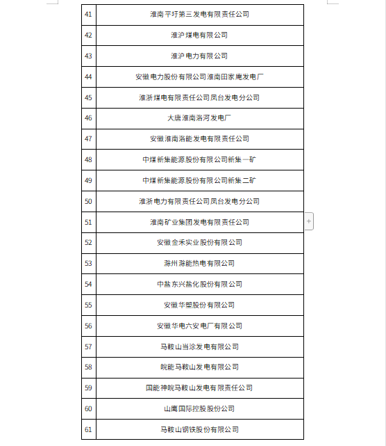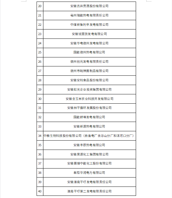 安徽省2021年度發(fā)電行業(yè)重點(diǎn)排放單位名錄