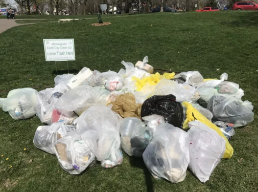 由于距離不遠(yuǎn),我們很快來到了公園門口,我們仔細(xì)地觀察了當(dāng)?shù)乩涞姆诸惽闆r,湊巧當(dāng)日為地球日,我們一行在公園門口遇到了志愿者收集的垃圾,并且分成了2堆擺放?;趪?yán)謹(jǐn)務(wù)實的工作作風(fēng)和對國內(nèi)崇洋媚外宣傳的不屑,我們持著懷疑地態(tài)度詳細(xì)驗證了一下老美的分類是否真的做的那么完善,我們對2堆垃圾袋進(jìn)行了拍照取樣。