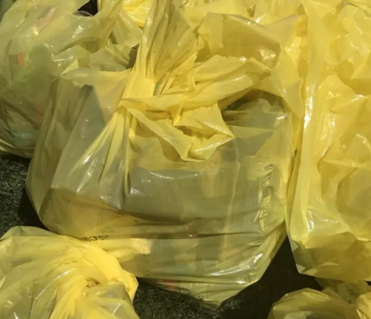 經(jīng)過調(diào)查,大部分黃色塑料袋內(nèi)均為可回收類的易拉罐,瓶子等。但也有混入的不可回收類垃圾。
