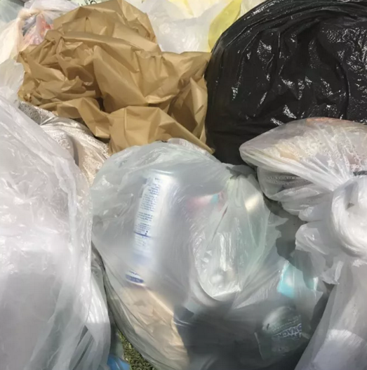 而白色透明袋里也發(fā)現(xiàn)了可回收的易拉罐等物品