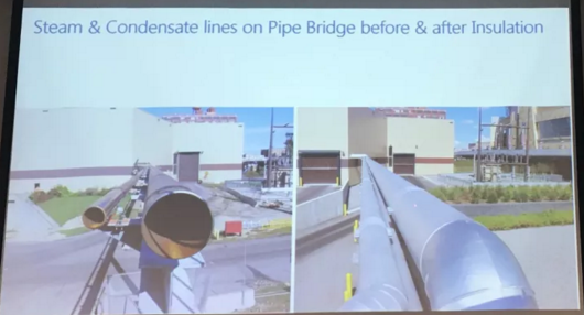 這座焚燒廠投運(yùn)于2014年,裝備精良,做工精湛,其采用了空冷島的設(shè)計(與我們山西大同項目很相似),尤其是彩瓦的材質(zhì)和施工質(zhì)量充分體現(xiàn)出了一個代表美國最新工藝水平的巔峰之作。對于彩瓦的材質(zhì)選擇和施工監(jiān)督,一直是我們所關(guān)注的重點(diǎn),對彩瓦應(yīng)當(dāng)嚴(yán)格要求采用連續(xù)瓦楞并確保足夠的厚度,才能體現(xiàn)出一個項目的質(zhì)感和品質(zhì),這也是我本人最關(guān)注的環(huán)節(jié)。