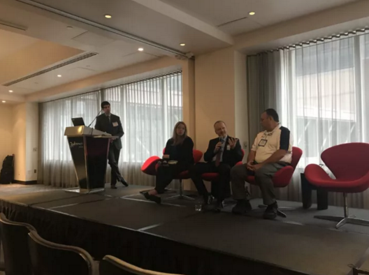 老美的會議形式我覺得比國內(nèi)的會議形式略有不同。通常一個議題由一位大咖發(fā)言,同時會有3-4位大咖就坐一邊,等發(fā)言的大咖結(jié)束后,會共同探討這個話題,坐在一邊的大咖發(fā)言較為簡短,他們也會一起回復(fù)在座聽眾提出的問題。這種形式下,我認(rèn)為其交互性更強(qiáng)一些,而分享的觀點(diǎn)也會持不同的見解,會帶給聽眾更多角度的思考。
