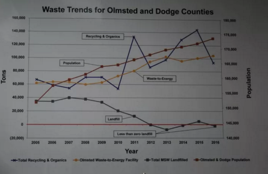 在會場有2位發(fā)言人講述了自己如何改進(jìn)和提升焚燒廠的面貌和性能。一位是我們隨后去參觀的明尼阿波利斯的Hennepin焚燒廠,發(fā)言人是位老先生。從他如數(shù)家珍的ppt照片來看,他任職這個廠的年頭非常之久。他除了介紹這個焚燒廠的發(fā)展歷史以外,主要介紹了一個重要的技改提升,為了美觀將一面墻的門移動到了另一面墻(因為原來一面墻面對一個棒球場,從棒球場那邊看過來形象不佳),修改了垃圾車進(jìn)出的通道,提高了工作效率。這個工作在中國人眼里看來幾乎是不值一提,因為中國正在建設(shè)大量的焚燒廠,我們正在滿足城市處理垃圾的主要功能,還無暇顧及門開在那邊是否美觀,通道如何布置可以提高多少效率,在我看來,這就是新進(jìn)暴發(fā)戶和老鄉(xiāng)紳的區(qū)別: