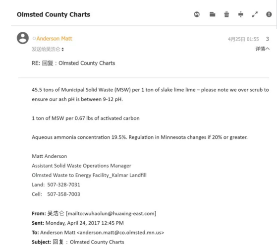 參觀的同時,我們交流了一下大致的排放指標(biāo),由于時間久了具體排放限值數(shù)據(jù)記不清了,但印象中其排放指標(biāo)一般,甚至高于國內(nèi)現(xiàn)行的18485標(biāo)準(zhǔn)?;貒笪也殚喠讼嚓P(guān)資料,發(fā)現(xiàn)明尼阿波利斯的地方標(biāo)準(zhǔn)有所提高。其依據(jù)是我查閱了一個Olmsted焚燒廠3號線的環(huán)評報告,并注意到Olmsted的1.2號線的排放標(biāo)準(zhǔn)明顯寬于3號線的排放標(biāo)準(zhǔn),有興趣的同志可以往上翻幾頁看看Olmsted廠的排放標(biāo)準(zhǔn)。