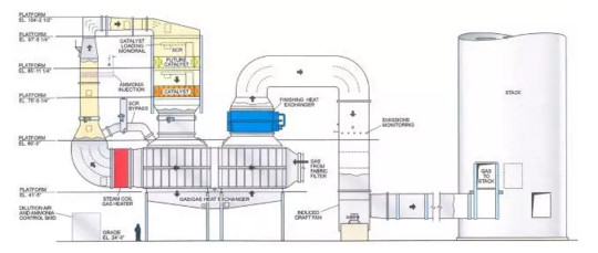 該廠主要燃料為城市生活垃圾,輔助燃料為天然氣。95MW的裝機(jī)容量,可供應(yīng)55000個家庭。單臺鍋爐供熱能力為:284,400 lb/h。我們關(guān)注的煙氣區(qū)域分為2個部分,SDA+SCR。