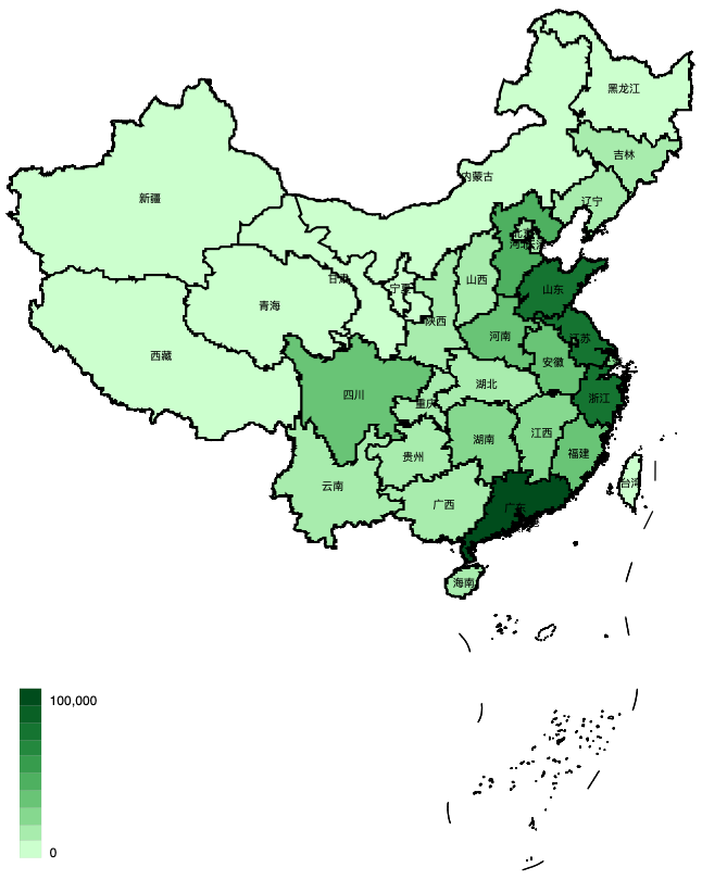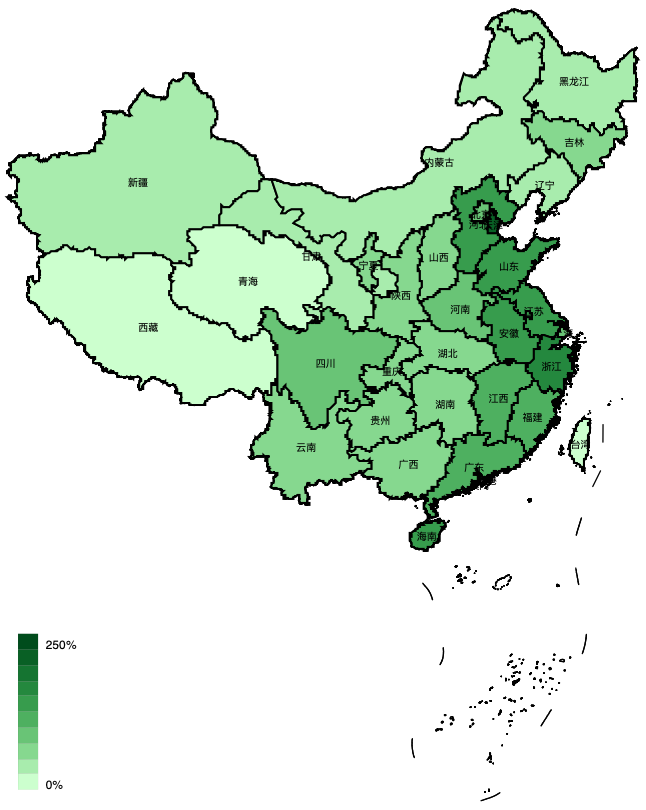 注:青海西藏為0,另外項目團隊未統(tǒng)計我國港澳臺地區(qū)情況。