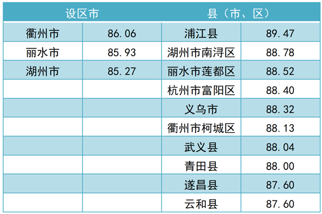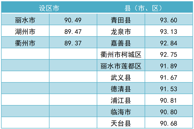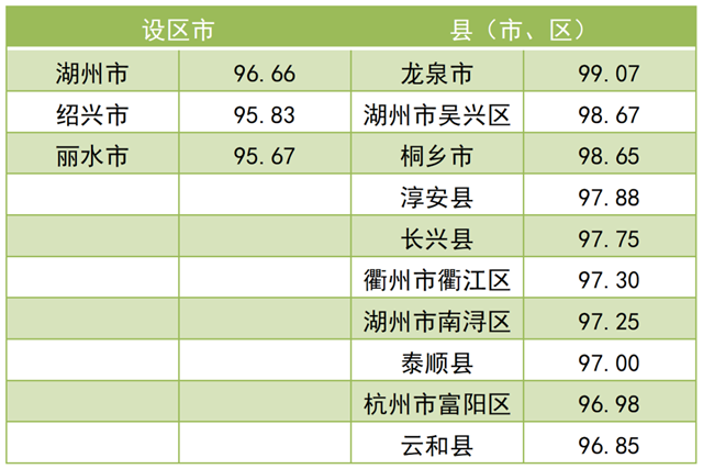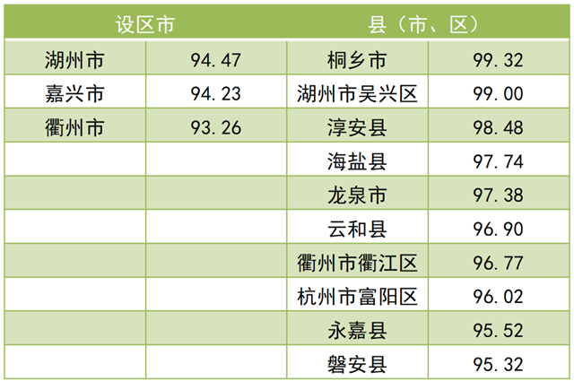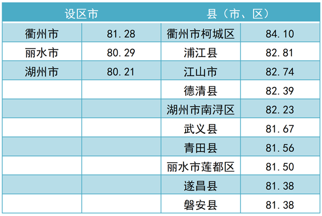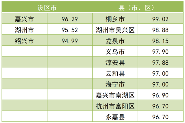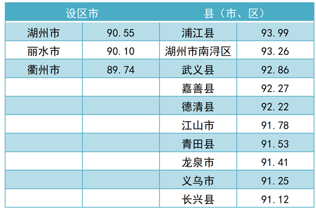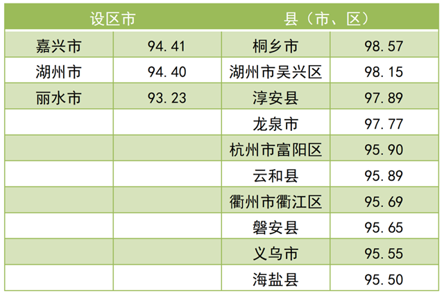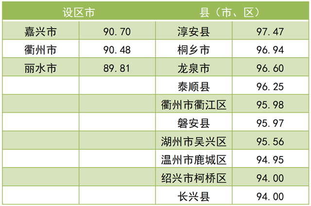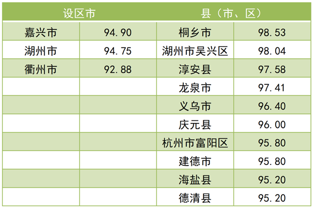 調(diào)查結(jié)果顯示,2021年全省“無廢城市”建設(shè)成效滿意度總得分為 79.97。其中,公眾滿意度總得分為76.84,企業(yè)滿意度總得分為92.50。現(xiàn)將總得分和各維度得分靠前的3個(gè)設(shè)區(qū)市和10個(gè)縣(市、區(qū))作一公布。