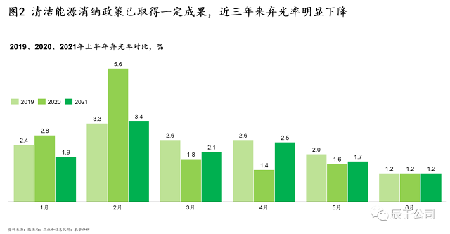 二是消納問(wèn)題。電力消納曾制約我國(guó)光伏行業(yè)大規(guī)模發(fā)展,主要表現(xiàn)在三個(gè)方面:1)供需逆向分布,太陽(yáng)能資源多分布于“三北”地區(qū),而用電負(fù)荷主要在中東部和南方地區(qū),由此帶來(lái)的跨省區(qū)輸電壓力較大;2)供大于需,近年在國(guó)家政策的支持下,光伏發(fā)電裝機(jī)保持著較快的增長(zhǎng),遠(yuǎn)超全社會(huì)用電量的增速,供需不匹配造成了較大的消納壓力;3)能源波動(dòng)性強(qiáng),光伏發(fā)電受自然條件影響存在比較大的波動(dòng)性,大規(guī)模并網(wǎng)后,給電力系統(tǒng)的調(diào)度運(yùn)行帶來(lái)了較大挑戰(zhàn)??上驳氖?,在儲(chǔ)能技術(shù)、跨區(qū)域交易市場(chǎng)、“光伏+”場(chǎng)景日新月異之下,上述消納問(wèn)題正逐步得以解決:例如2020年發(fā)布的《關(guān)于建立健全清潔能源消納長(zhǎng)效機(jī)制的指導(dǎo)意見(征求意見稿)》鼓勵(lì)推動(dòng)電儲(chǔ)能建設(shè)和參與,2018年發(fā)布的《關(guān)于積極推進(jìn)電力市場(chǎng)化交易的通知》指出加快電力市場(chǎng)建設(shè),提高市場(chǎng)化交易比重,2020年發(fā)布的《關(guān)于加快新型建筑工業(yè)化發(fā)展的若干意見》指出促進(jìn)與建筑相結(jié)合的光伏發(fā)電系統(tǒng)應(yīng)用等。隨之而來(lái)的是,近三年來(lái)?xiàng)壒饴拭黠@下降(見圖2)。