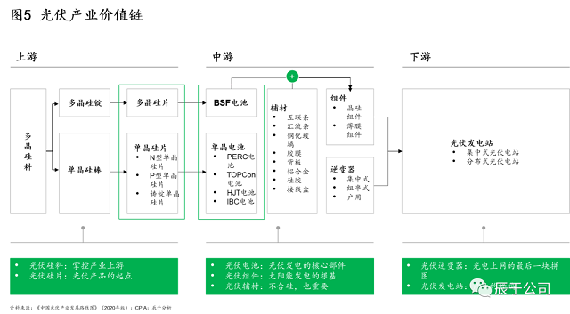 光伏細(xì)分市場(chǎng)多,上下游聯(lián)系緊密。從上游看,光伏硅料掌控著上游環(huán)節(jié),光伏硅片則是光伏產(chǎn)品的起點(diǎn);中游的光伏電池屬于光伏發(fā)電的核心部件,光伏組件則視為光伏發(fā)電的根基;下游的光伏逆變器是光電上網(wǎng)的最后一塊拼圖,光伏發(fā)電站則是產(chǎn)業(yè)的終端(見圖5)。