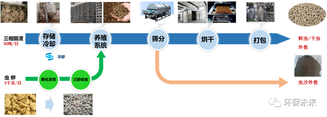 圖6 老港濕垃圾生物(黑水虻)資源化示范項目處理工藝流程