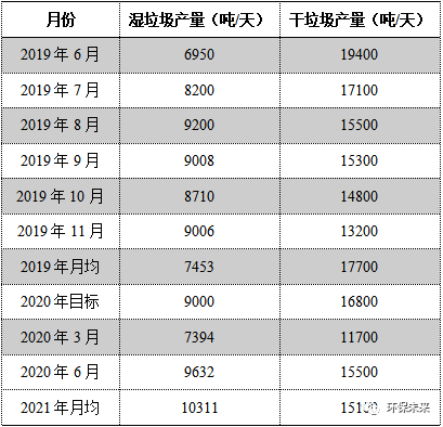據(jù)上海市綠化市容局公布的數(shù)據(jù)顯示(表1所示),2019年7月,上海廚余(濕)垃圾分出量達(dá)到8200噸/天,較2018年年底增長了110%。2020年6月,上海廚余垃圾分出量達(dá)到9632噸/天,較2019年同期增長近40%,2021年濕垃圾產(chǎn)量平均已經(jīng)超過1萬噸/日,分類成效遠(yuǎn)遠(yuǎn)走在國內(nèi)前端。預(yù)計上海廚余垃圾分出總量的峰值可以達(dá)到11300噸/天,其中家庭廚余占6800噸/天,餐廚垃圾3000噸/天,其他濕垃圾1500噸/天。