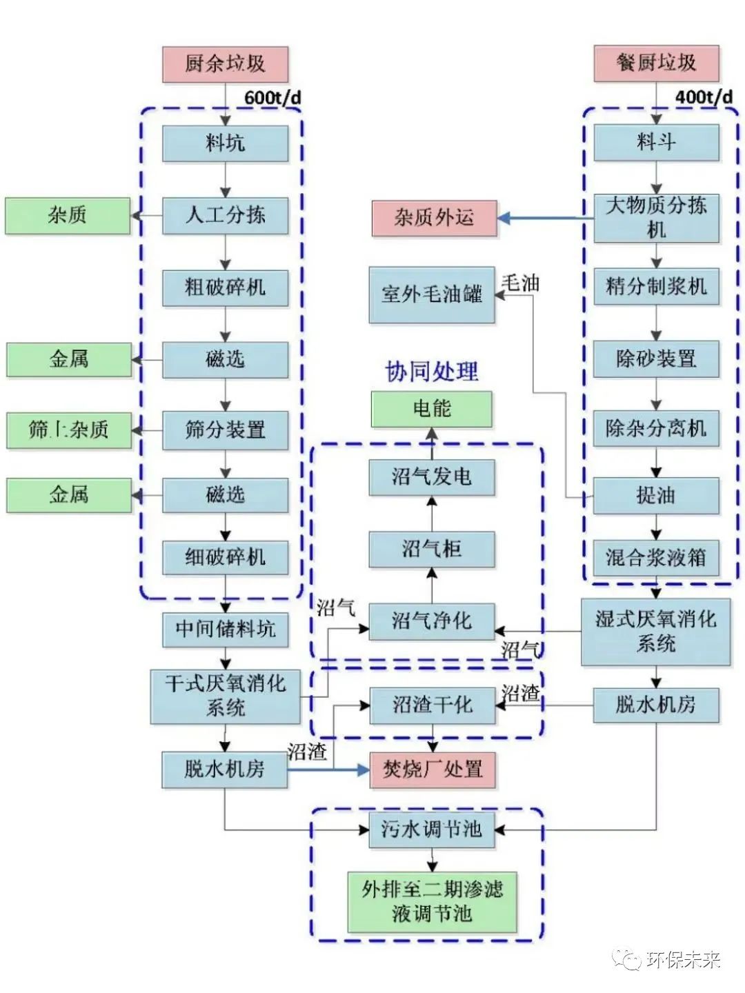 圖3 閔行餐廚廢棄物資源化中心(一期)工藝流程