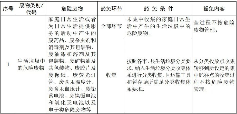 由于危險廢物具有諸多危害,危險廢物收集、運輸、處置、利用等全流程嚴格按照經(jīng)營許可證制度管理。同時也規(guī)定,在滿足一定的條件下,危廢的收集、運輸、處置等環(huán)節(jié)可以豁免,按照豁免內(nèi)容的規(guī)定實行豁免管理。例如生活源的危廢(廢電池、水銀溫度計等),如果未集中收集的,則全部環(huán)節(jié)不按危廢管理,如果已按照地方要求納入分類收集體系,且運輸工具和暫存場所滿足分類收集體系要求,則從分類投放點收集、轉(zhuǎn)移到集中貯存點的收集過程不按危廢管理。