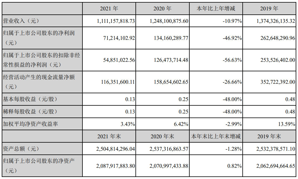 就在這樁交易官宣的同時(shí),4月28日,先河環(huán)保剛剛發(fā)布了2021年的年報(bào),報(bào)告期內(nèi),公司實(shí)現(xiàn)營(yíng)業(yè)收入11.11億元,同比下降10.97%;實(shí)現(xiàn)歸屬于上市公司股東的凈利潤(rùn)7121萬元,同比下降46.92%。
