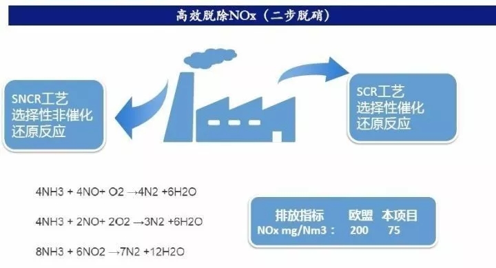 七步法煙氣處理:SNCR(選擇性非催化還原脫硝)+旋轉(zhuǎn)噴霧脫酸塔(添加Ca(OH)2)+干法脫酸+活性炭噴射吸附+布袋除塵器+SGH+SCR(選擇性催化還原脫硝)+濕法脫酸+GGH(煙氣再加熱)