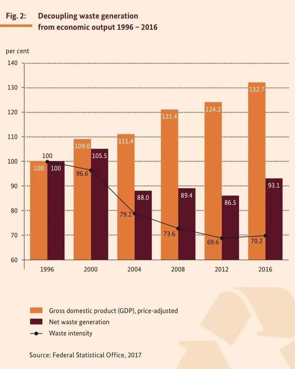 2020年3月,德國(guó)聯(lián)邦環(huán)境、自然保護(hù)、核安全與消費(fèi)者保護(hù)部 (Federal Ministry for the Environment, Nature Conservation and Nuclear Safety) 發(fā)布《德國(guó)固廢管理2020》(Waste Management in Germany 2020),旨在展示政府、企業(yè)及公民可以共同達(dá)到的目標(biāo),并為希望以生態(tài)無(wú)害方式實(shí)現(xiàn)資源閉環(huán)的國(guó)家提供最佳實(shí)踐范例。循環(huán)經(jīng)濟(jì)涵蓋了資源管理的所有階段,從資源開(kāi)采、產(chǎn)品設(shè)計(jì)和制造到銷(xiāo)售、消費(fèi)以及通過(guò)再利用和回收實(shí)現(xiàn)循環(huán)的結(jié)束,同時(shí)也是一項(xiàng)全球性的任務(wù)。