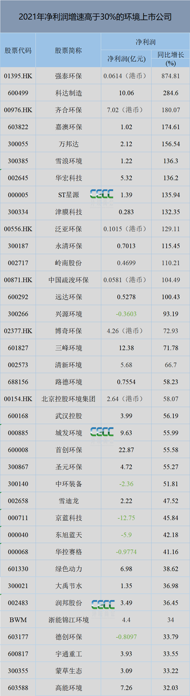 2021年環(huán)境上市企業(yè)最賺錢的都有誰?