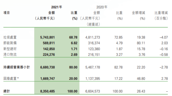 光大環(huán)境為中國光大集團股份公司骨干企業(yè),香港聯(lián)交所主板上市公司。2003年轉(zhuǎn)型環(huán)境領(lǐng)域以來,光大環(huán)境已逐步成長為中國最大環(huán)境企業(yè)、亞洲環(huán)保領(lǐng)軍企業(yè)、全球最大垃圾發(fā)電投資運營商及世界知名環(huán)境集團。年報披露,2021年,光大環(huán)境新突破了新疆固廢處理市場,天津市、河北省及毛里求斯的水務(wù)市場,中國香港光伏發(fā)電市場,以及江蘇常州市、蘇州市吳江區(qū)垃圾分類市場等。2021年,光大環(huán)境共簽署69個新項目(包括收購項目)以及2份現(xiàn)有項目的補充協(xié)議,總投資約人民幣132.48億元,涉及垃圾發(fā)電、餐廚及廚余垃圾處理、垃圾分類、光伏發(fā)電、水處理等;承接2個垃圾分類服務(wù)、6個環(huán)境修復(fù)服務(wù)、8個EPC項目、2個EMC項目、1個委托運營項目,以及1個設(shè)備供貨服務(wù),合同總金額約人民幣3.31億元。
