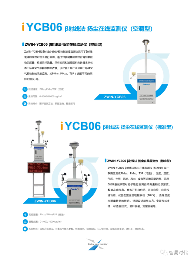 ZWIN-YCB06 β射線法揚塵在線監(jiān)測儀是一款高度集成PM2.5、PM10、TSP (可選)、溫度、濕度、氣壓、光照、風速、風向、噪音等環(huán)境監(jiān)測因素,采用 β射線衰減原理對粒子進行監(jiān)測自動測量和記錄濃度,數據準確可靠。具備開機自啟動、開機自檢、自動校準功能,儀器配置溫濕聯控系統(tǒng)(DHS),去除濕度對測量數據的影響,外觀設計簡單大方,安裝方式多樣,可選壁掛式、立桿安裝、支架安裝等。