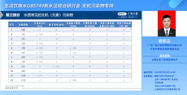 由歐陽(yáng)正打頭陣,有關(guān)《生活飲用水 無(wú)機(jī)污染物監(jiān)測(cè)技術(shù)》的主題分享就此展開(kāi)。