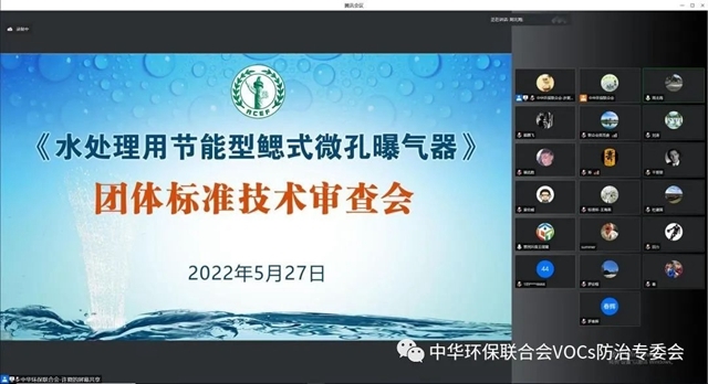 2022年5月27日,中華環(huán)保聯(lián)合會組織的《水處理用節(jié)能型鰓式微孔曝氣器》團體標準(初稿)技術(shù)審查會以視頻會議形式順利召開。該標準通過技術(shù)審查,審查組由五位專家組成。中華環(huán)保聯(lián)合會秘書長助理吳克食參加會議。