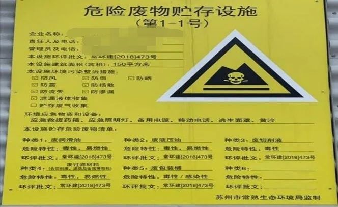 在收集、貯存、運(yùn)輸、利用、處置危險(xiǎn)廢物的設(shè)施、場(chǎng)所均應(yīng)設(shè)置規(guī)范(形狀、顏色、圖案均正確,其中貯存場(chǎng)所還應(yīng)按照《關(guān)于進(jìn)一步加強(qiáng)危險(xiǎn)廢物污染防治工作的實(shí)施意見(jiàn)》(蘇環(huán)辦字〔2019〕222號(hào))要求規(guī)范設(shè)置識(shí)別標(biāo)識(shí))的危險(xiǎn)廢物識(shí)別標(biāo)志。