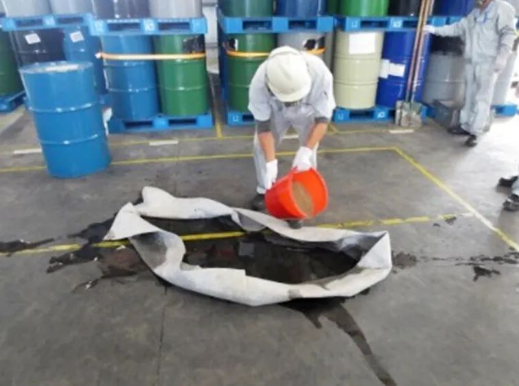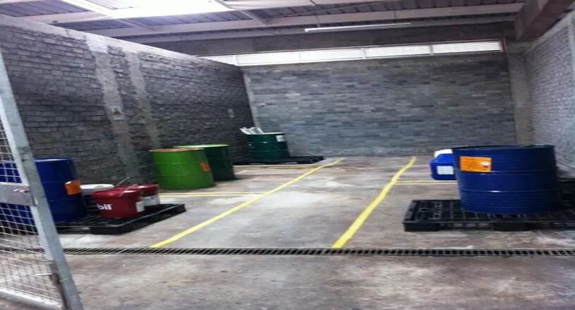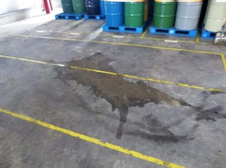 ▲貯存液態(tài)廢物區(qū)已設(shè)置泄露液體收集溝、池
