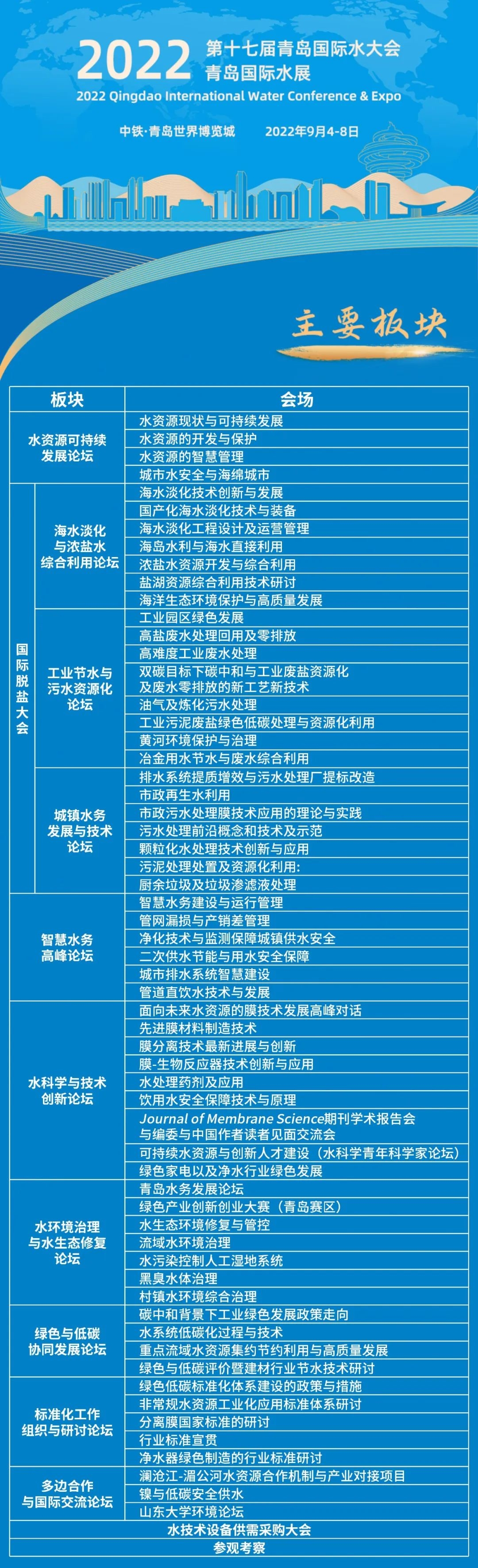 由衷感謝廣大代表、展商、觀眾及合作伙伴長期以來對(duì)大會(huì)的鼎力支持和信任,對(duì)主承辦方工作的高度理解和積極配合。2022青島國際水大會(huì)暨青島國際水展必將秉承其高水準(zhǔn)和高品質(zhì),9月與您再聚美麗青島!祝愿您和家人健康平安!