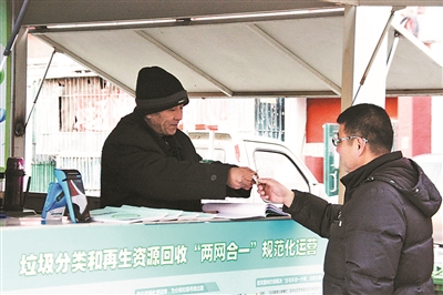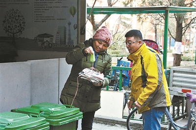 昨天上午,北青報(bào)記者來到朝陽區(qū)勁松農(nóng)光里中社區(qū)。春節(jié)假期剛過,這里已在全市率先試點(diǎn)垃圾分類回收與再生資源回收“兩網(wǎng)融合”,探索垃圾分類、分質(zhì)、分時(shí)收運(yùn)模式,引導(dǎo)居民在源頭做好垃圾分類。