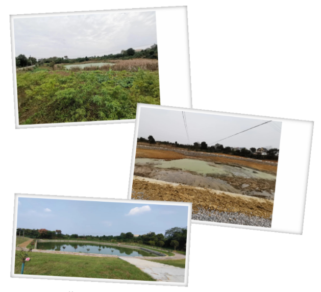 宜都市陸城街道尾筆村小水庫黑臭水體治理前、中、后對比圖