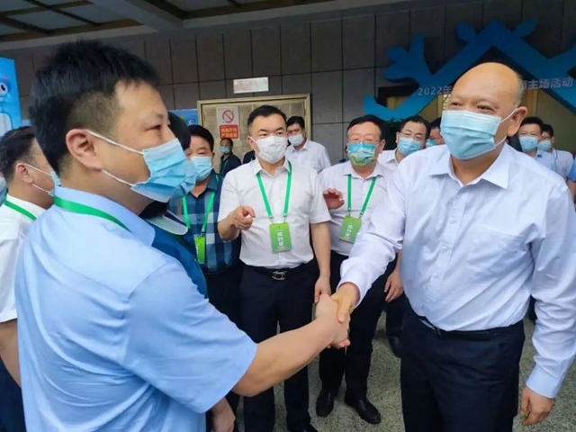 副省長(zhǎng)李建中與九九智能環(huán)保董事長(zhǎng)劉黎明親切交流