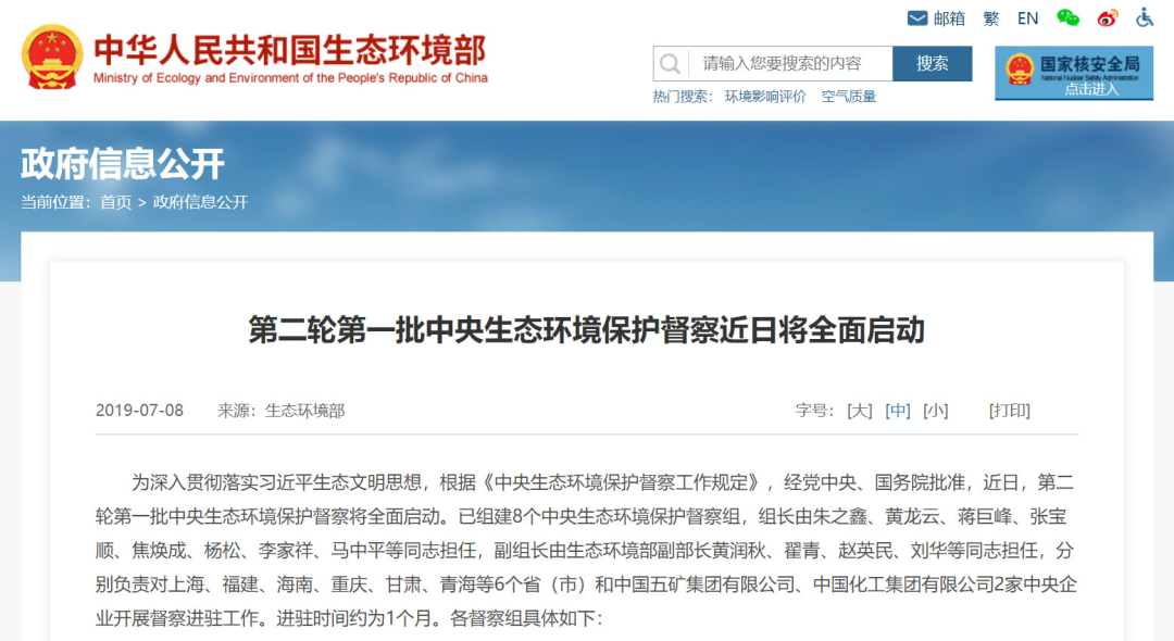 2019年7月,為深入貫徹落實習(xí)近平生態(tài)文明思想,根據(jù)《中央生態(tài)環(huán)境保護(hù)督察工作規(guī)定》,經(jīng)黨中央、國務(wù)院批準(zhǔn),第二輪第一批中央生態(tài)環(huán)境保護(hù)督察全面啟動。