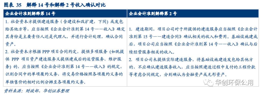 環(huán)保行業(yè)中很多項(xiàng)目的業(yè)主都是地方政府,所以項(xiàng)目大多采用PPP、BOT模式。2021年1月26日,財(cái)政部印發(fā)《企業(yè)會(huì)計(jì)準(zhǔn)則解釋第14號(hào)》,規(guī)范了企業(yè)對(duì)政府和企業(yè)合作(PPP)項(xiàng)目合同的會(huì)計(jì)處理,并完全取代了《解釋2號(hào)》中BOT項(xiàng)目會(huì)計(jì)處理方法。該會(huì)計(jì)政策變更的影響已體現(xiàn)在環(huán)保上市公司發(fā)布的2021年報(bào)之中。在本周的小專(zhuān)題研究中,我們將以典型環(huán)保上市公司財(cái)報(bào)為基礎(chǔ),剖析該會(huì)計(jì)準(zhǔn)則變更對(duì)資產(chǎn)負(fù)債表、現(xiàn)金流量表和利潤(rùn)表的影響。
