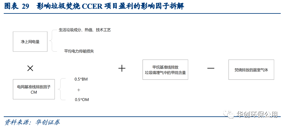 CM-072-V01“多選垃圾處理方式”(第一版)中詳細(xì)規(guī)定了測(cè)算一個(gè)垃圾焚燒項(xiàng)目所產(chǎn)生的CCER噸數(shù)的方法學(xué)。與可再生能源發(fā)電項(xiàng)目相比,垃圾焚燒發(fā)電項(xiàng)目不僅替代了項(xiàng)目所在地電網(wǎng)的火力發(fā)電的碳排放,還避免了垃圾填埋產(chǎn)生的甲烷排放;但焚燒化石燃料也會(huì)帶來(lái)一定的溫室氣體排放。
