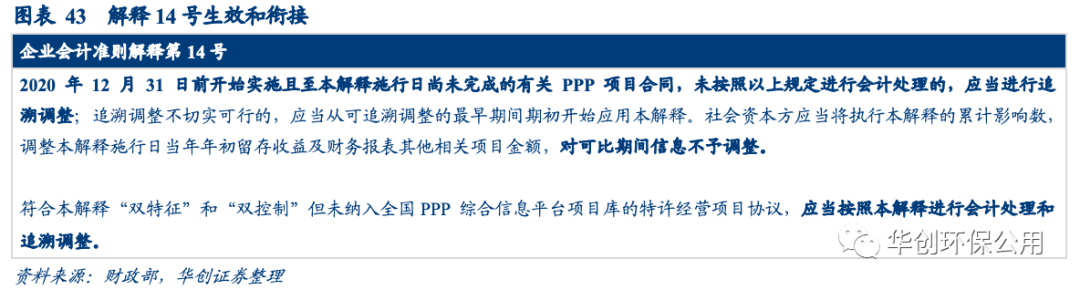 解釋14號(hào)要求對(duì)部分借款費(fèi)用予以費(fèi)用化處理。解釋2號(hào)中對(duì)價(jià)類(lèi)型(無(wú)形資產(chǎn)模式、金融資產(chǎn)模式或混合模式)對(duì)借款費(fèi)用資本化沒(méi)有影響而解釋14號(hào)明確借款費(fèi)用的資本化對(duì)象是無(wú)形資產(chǎn),對(duì)價(jià)類(lèi)型是金融資產(chǎn)或者是混合模式下的金融資產(chǎn)部分,相關(guān)的借款費(fèi)用均應(yīng)予以費(fèi)用化。我們認(rèn)為該會(huì)計(jì)準(zhǔn)則的變更是2021年部分環(huán)保上市公司財(cái)務(wù)費(fèi)用上漲的原因之一。