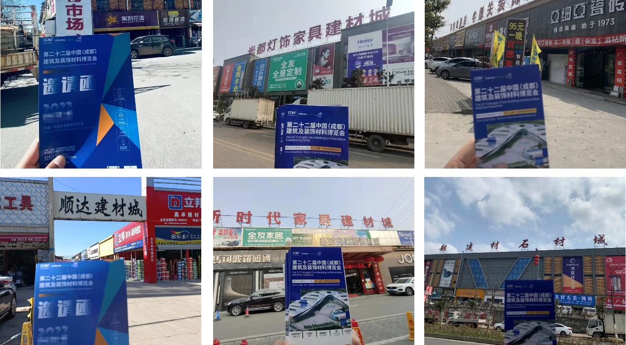 自2022年2月以來,中國成都建博會工作人員下沉市場、面對面走訪推廣宣傳,北進(jìn)陜西、甘肅,南到貴州、云南,西擴(kuò)西藏、青海,東至重慶,湖北,足跡遍布各省市(區(qū))縣。四川、重慶、貴州、陜西等省市基本實現(xiàn)縣域全覆蓋,派發(fā)資料26萬份,更新經(jīng)銷代理商有效數(shù)據(jù)10萬余條。