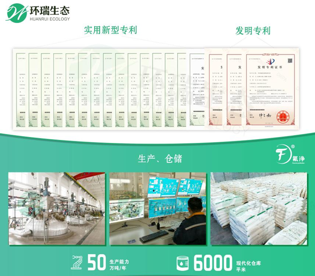 環(huán)瑞生態(tài)專注于氟化物深度治理,目前已經(jīng)累計(jì)授權(quán)除氟專利近30項(xiàng),其中除氟發(fā)明專利3項(xiàng);擁有國(guó)內(nèi)生產(chǎn)基地三處,產(chǎn)能達(dá)到50萬(wàn)噸/年。針對(duì)不同行業(yè)的含氟廢水,環(huán)瑞生態(tài)將定制不同的產(chǎn)品滿足客戶的需求,讓客戶省心、放心。