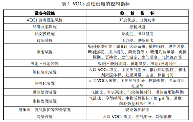 5.2.1 排污單位應(yīng)根據(jù)生態(tài)環(huán)境保護要求以及相關(guān)的技術(shù)文件資料,在操作規(guī)程中設(shè)定VOCs 治理設(shè)施正常運行的控制指標(biāo),包括但不限于表 1 所列內(nèi)容