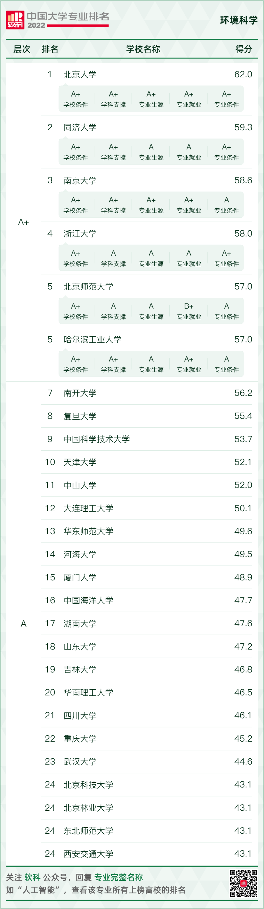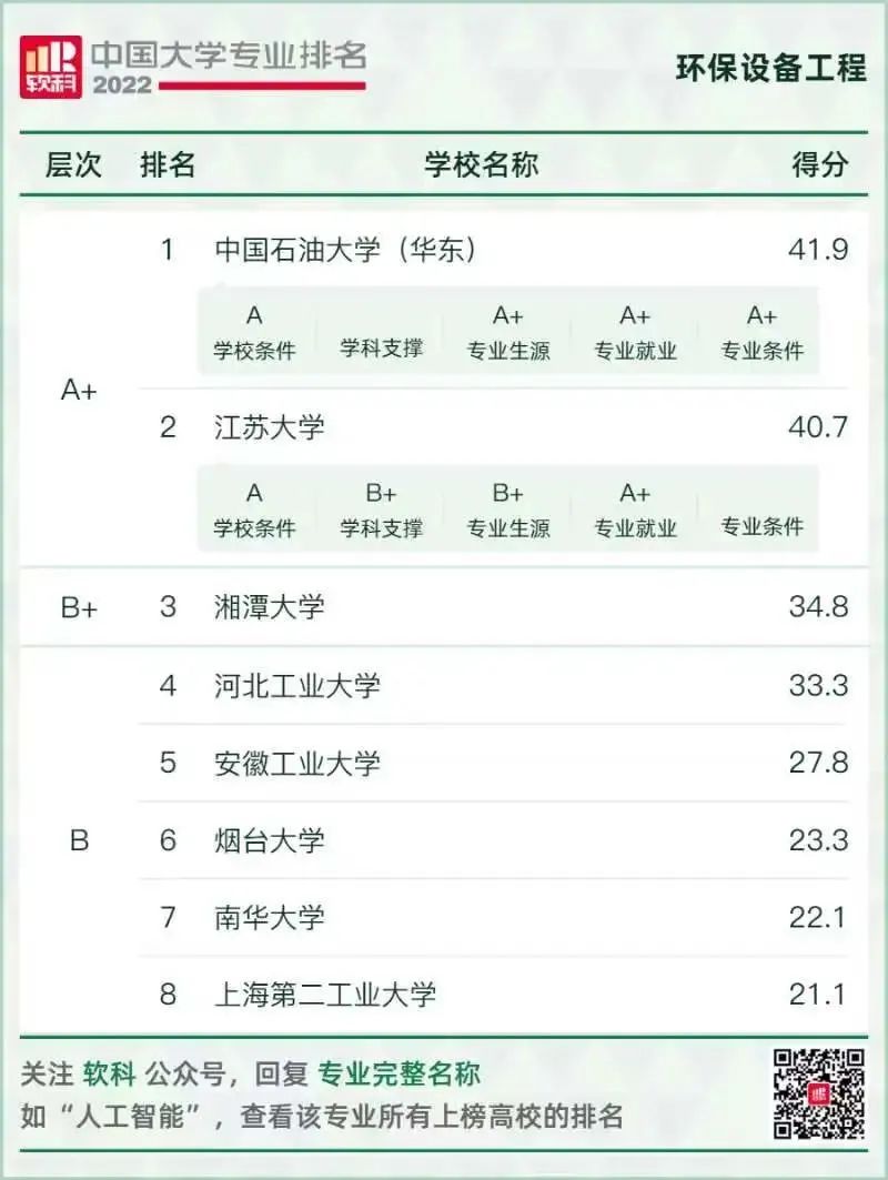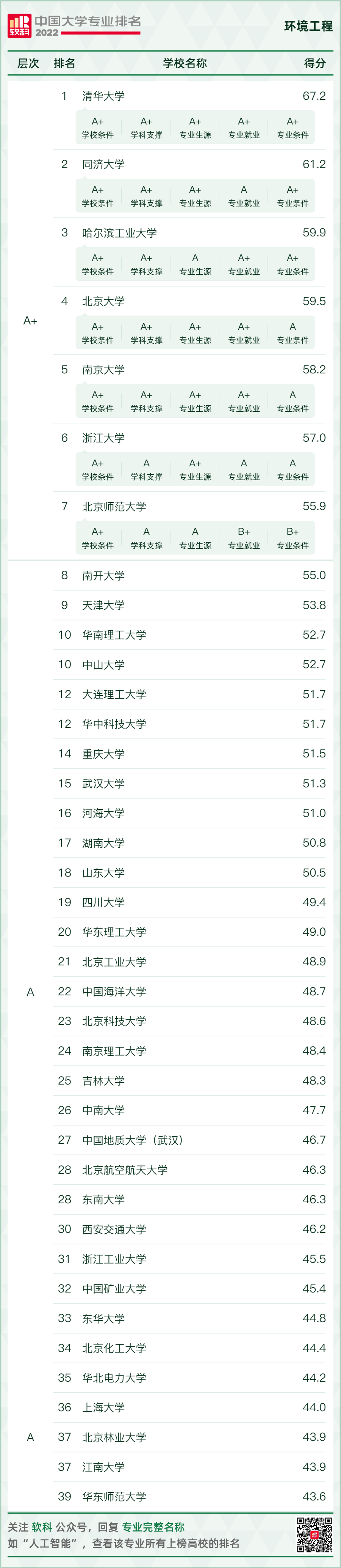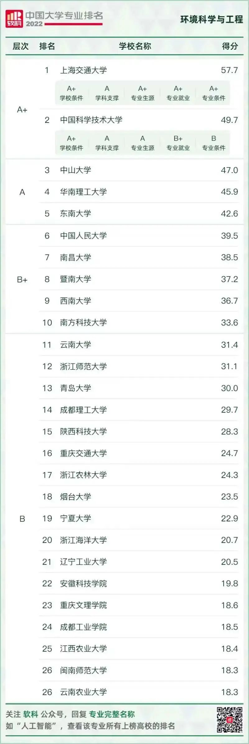 高校排名 | 2022軟科中國(guó)大學(xué)環(huán)境科學(xué)與工程類專業(yè)排名