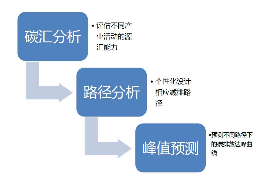 以基于城市尺度的可計(jì)算一般均衡模型(CGE)為核心,通過LEAP\TIMES模型自底向上進(jìn)行核算、預(yù)測以及減排潛力分析,通過MARKAL模型進(jìn)行減排路徑優(yōu)化。耦合社會、經(jīng)濟(jì)、環(huán)境、健康等模塊,構(gòu)建區(qū)域碳排放情景仿真模型,能夠反應(yīng)多區(qū)域經(jīng)濟(jì)發(fā)展與碳排放的復(fù)雜響應(yīng)關(guān)系。