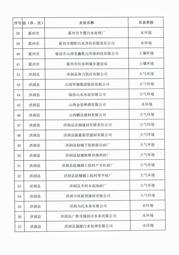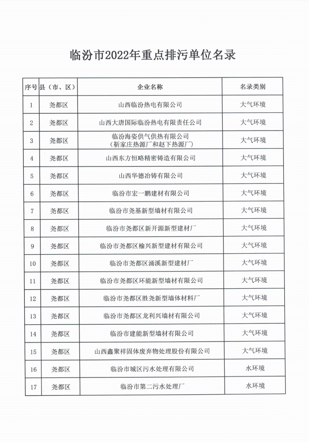 原標題:關于公布臨汾市2022年重點排污單位名錄的通知