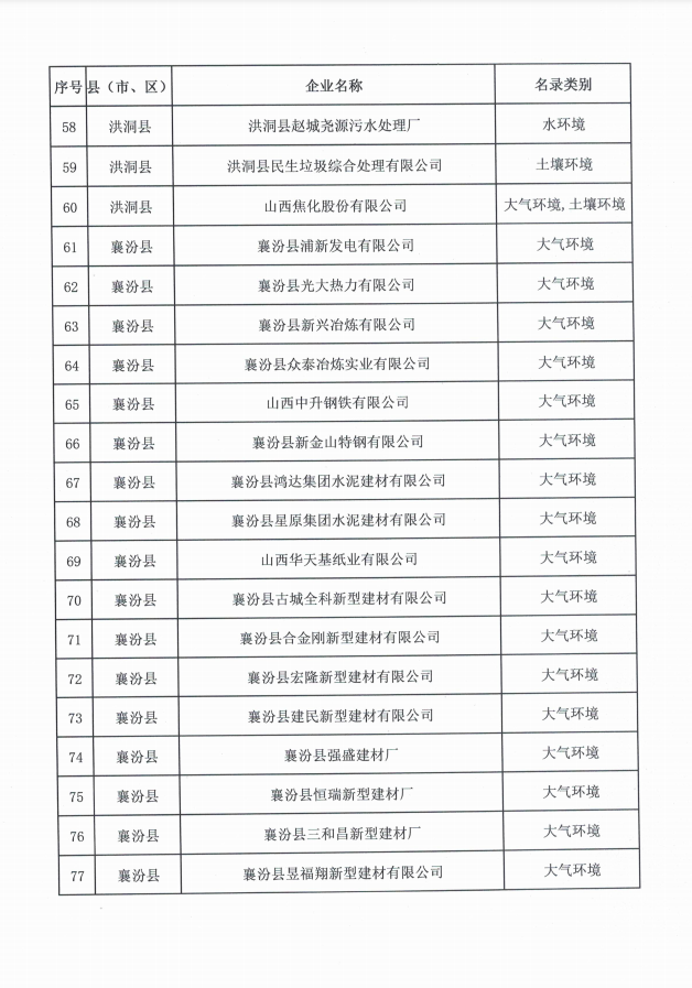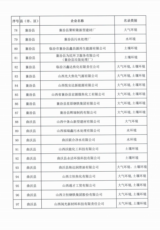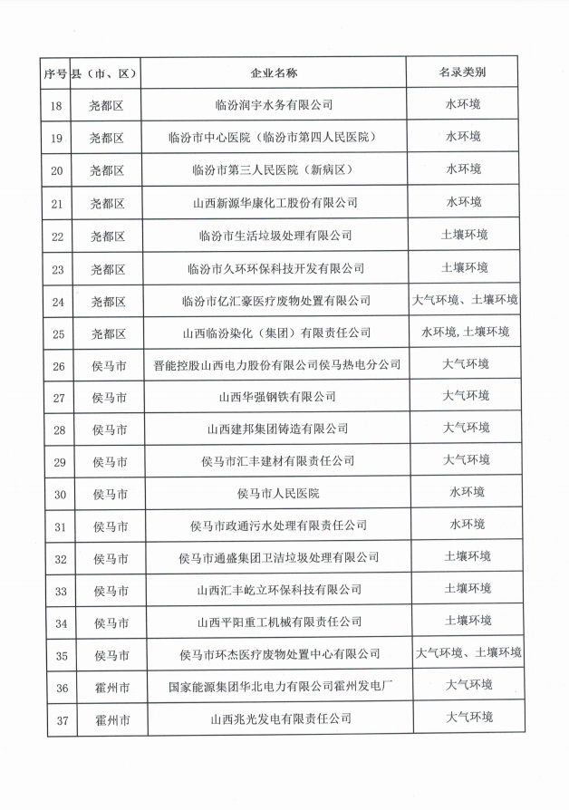 近日,臨汾市生態(tài)環(huán)境局公布了2022年重點排污單位名錄,涉及大氣環(huán)境、水環(huán)境、土壤環(huán)境等重點排污單位共141家。詳情如下: